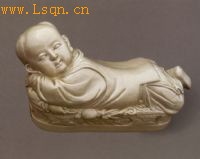 瓷枕是我国古代的夏令寝具。古人认为瓷枕“最能明目益精,至老可读细书”,所以无论富贵贫贱都极喜好,宋代南北方瓷窑曾大量烧造.河北钜鹿曾出土一件瓷枕,枕上题有“久夏天难暮,纱树正午时。忘机堪书寝,一枕最幽宜”五言诗,道出了瓷枕的妙用。此枕作成男孩形状,或许寓意“宜男”。