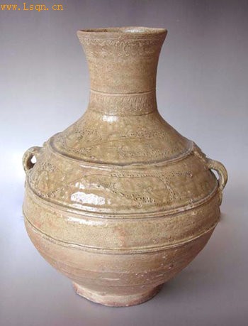 青釉鸟纹两系罐(汉)