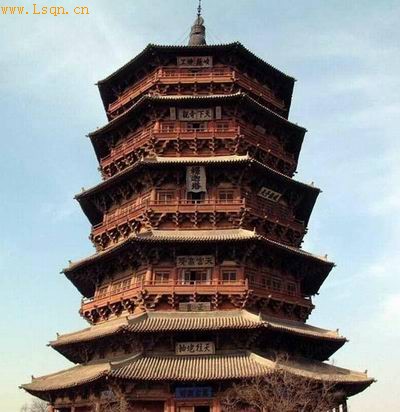 应县木塔底层直径30米,外表看是五层六檐,但每层都设有一个暗层,实际是9层。木