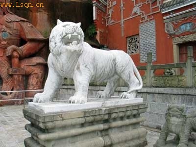 虎的崇拜应源自楚文化中对虎的图腾崇拜。虎一直受到汉民族的崇拜,是正义、勇猛无适度、威严的象征。据考证,虎的形象在古羌戎族也有出现,但在我国西南地区最为流行。新石器时代良渚文化中的玉琮的兽面和殷商青铜器上的兽面都与虎的形象相似,直到今天我国的彝族、白族、布依族、土家族等民族仍称虎是其祖先。汉代人把虎看作是百兽之王。白虎是五百年才能变白的虎,是神物,而且仙人往往也乘虎升天。是镇西之兽。自汉代以后虎一直成为劳动人民喜爱的保护神,而没有成为帝王的象征,经过漫长的历史演化与发展,崇虎的文化意识,已成为中华民族的共同的文化观念。