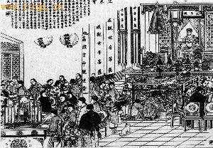 生菜会是岭南一种节日风俗。图为晚清时广东南海百姓正月二十六日在白衣送子观音庙举办生菜会