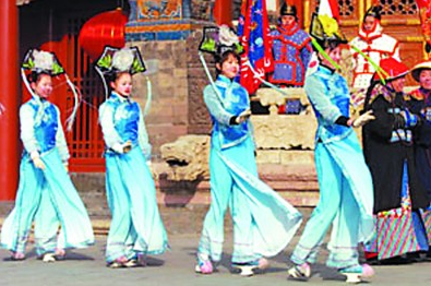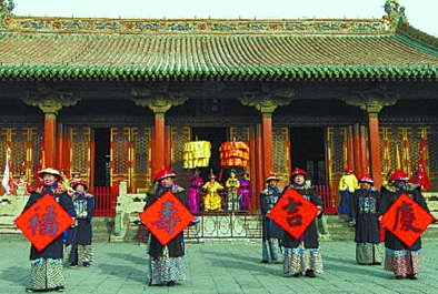 沈阳故宫重现的清初皇宫春节盛典仪式现场。资料片