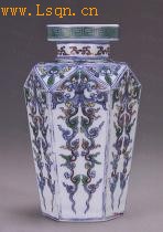 清雍正 景德镇窑斗彩卷草纹六角瓶