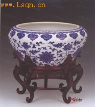 景德镇窑青花缠枝莲纹鸡心钵缸(清)