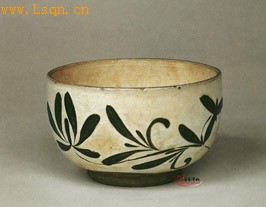 碗口微内敛,深腹,圈足。通体施釉,外壁饰黑彩花草纹。纹饰线条流畅洒脱,质朴自然,拥有鲜明的民间艺术特色。