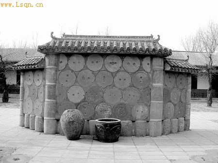 中原民俗园中用磨盘建造的神农大殿