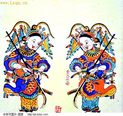 夹江手绘年画色彩淡雅,接近古代文人画的气韵,淡青灰绿的色调和西南岷江流域的田园风格非常协调。这和过去手绘年画大多是官绅欣赏、富贵人家定制有关。年画的造型和神韵也和别地不同,有着浓郁的川味,柔美清奇,面相也有川人的感觉。
