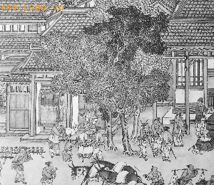 城西下水门外流水渐急,船棹或泊或行,捕鱼运货忙个不息。广阔的田间新秧苗茁壮生长,人们此刻也不忘到土地庙祈求福祉,给土地公、土地婆跪拜,而且还供奉鱼、猪、鸡和香烛。画面之外,正是诗仙李白心中“二水中分”的白鹭洲……宋代金陵城乡的繁华富庶,以及地理风貌、风土人情等况味历历在目,细细品味让人情趣盎然。