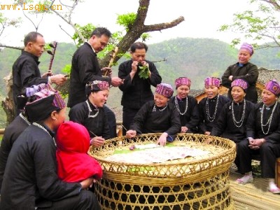 喜庆时节,村民会围坐一起演唱山歌。