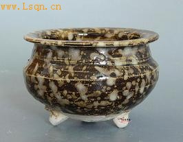 南宋 吉州窑黑地玳瑁斑三足炉