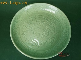 明 龙泉窑青釉刻五爪龙纹大盘