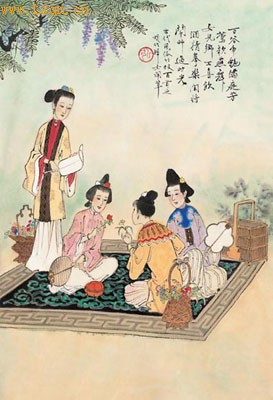 12、曲水流觞“曲水流觞”是宴饮聚会时的一种游戏,可以视为一种酒令,输赢其实无所谓。众人坐于环曲的水边,把盛着酒的酒杯置于流水之上,任其顺流漂下,停在谁面前,谁就要将杯中酒一饮而下,并赋诗一首。这游戏也常被作为上巳节的习俗。皇帝与朝臣的唱和应制诗多有涉及到这种游戏的。上官昭容(即上官婉儿)的《游长宁公主流杯池二十五首》之二十四写道:参差碧岫耸莲花,潺湲绿水莹金沙。何须远访三山路,人今已到九仙家。长宁公主是唐中宗和韦皇后(后因发动宫廷政变被废,称韦庶人)所生,嫁杨慎交,其府中有流杯池,皇帝和皇后多次亲临。“潺湲”是水流徐缓的样子。“三山”是传说中的东海三座神山――蓬莱、方丈、瀛洲。“九仙”,道家把太清境的仙人分为九等:一上仙、二高仙、三大仙、四玄仙、 上一页 [1] [2] [3] [4] 下一页