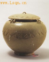 南朝 青瓷浮雕莲瓣纹八系盖罐