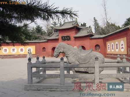 白马寺是佛教传入我国后由官方营造的第一座寺院。它的营建与我国佛教史上著名的“永平求法”紧密相连。相传汉明帝刘庄夜寝南宫,梦金神头放白光,飞绕殿庭。次日得知梦为佛,遂遣使臣蔡音、秦景等前往西域拜求佛法。蔡、秦等人在月氏(今阿富汗一带)遇上了在该地游化宣教的天竺(古印度)高僧迦什摩腾、竺法兰。蔡、秦等于是邀请佛僧到中国宣讲佛法,并用白马驮载佛经、佛像,跋山涉水,于永平十年(公元67年)来到京城洛阳。汉明帝敕令仿天竺式样修建寺院。为铭记白马驮经之功,遂将寺院取名“白马寺”。