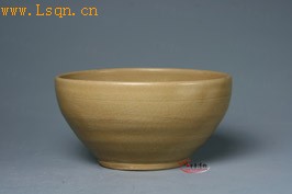 高5.5cm、口径10.8cm、底径5.5cm。 此钵直口微内收,弧腹,外壁修削痕迹明显,造型古朴稳重;釉水柔润匀薄,宝光含蓄内敛;釉色青中泛黄,似将熟之稻谷;足如吉祥玉壁,中心内凹,周围所见铁褐色支垫烧痕自然,整体老旧气息浓重,是一件较为完美的晚唐越窑作品,颇有收藏价值。