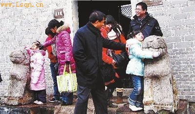 市民们对唐代石虎备感新奇,竞相摄影留念。朱波/摄