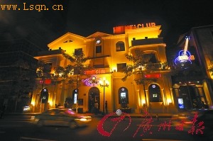 从珠江南岸向北岸远远望去,这幢新装修的酒吧格外醒目,建筑屋顶竖起的“HEIHEICLUB”和“喜喜”招牌上,霓虹灯的装饰闪闪发光。而在建筑的北面墙体上,整幅墙体布满酒吧的招牌。很难相信,这样一幢充满商业气氛的建筑,就是昔日肃穆的黄埔军校驻省办事处、黄埔军校同学会、中国青年军人联合会旧址。