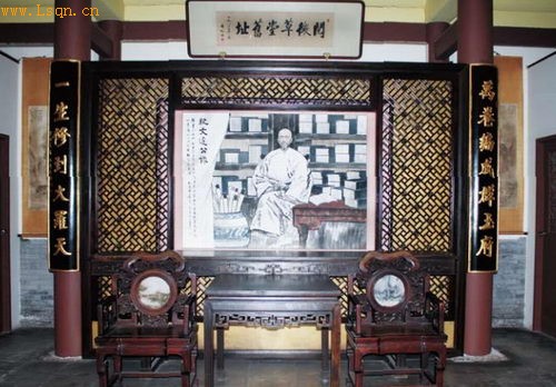 北京纪晓岚故居阅微草堂正厅。图中画像为纪晓岚六世孙纪清远创作的《纪文达公像》。凌云 摄