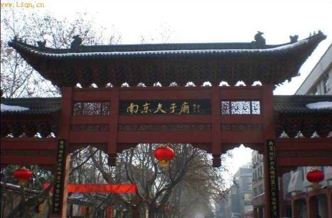 南京夫子庙是孔庙的俗称,是供奉和祭祀孔夫子的庙宇,又称文宣王庙,简称文庙。位于秦淮河北岸贡院街。始建于宋景祐元年(公元1034年),由东晋学宫扩建而成。这一组规模宏大的古建筑群历经沧桑,几番兴废,清同治八年(公元1869年)重建之后,于1937年遭侵华日军焚烧而严重损毁。