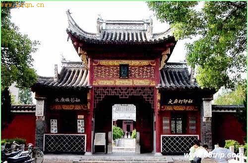 文庙,坐落在市中心,正对繁华街区和平路。旧称“圣庙”、“学宫”,为祭祀孔子的礼制性建筑群。据清《安庆府志》、《桐城县志》等记载:桐城文庙,原在县城东廓外,始建于元延柘初年(公元1314年),元末毁于兵火。明洪武初年,知县瞿那海移建文庙在今址。后屡遭兵燹与风雨侵蚀,其中清咸丰三年(1853年),损毁最重,仅存石棂星门。明清两代先后修葺19次。清同治三年(1864年)和五年(1866年),邑绅、知县等捐款筹资,全面修复文庙。其以大成殿为中心,沿南北中轴线对称布局,依次建有照壁、门楼、泮池(桥)、大成门、文昌祠、崇圣祠、东西长庑、大成殿、明伦堂及宫墙等,并以大成门为界,分前后两进院落,始成今日文庙之规模。文庙虽然迭经废兴,而今还其原貌,整修一新的文庙,仍然格局堂皇、古朴典雅,规模宏大,浑然一体,好似一组凝固的优美乐章。门楼正鎏金“文庙”二字,系赵朴初先生题书。