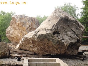 在平台上四块巨石旁,还有两块相对小了许多的石块。记者了解到,这是巨石上脱落下来的,所以也被一并打捞出水后陈列在平台上,这样看来就有了六块石头。由于纯粹是外行,尽管记者睁大眼睛在每块巨石上细看,除了看到有明显的凹凸、蜂窝、线条和印迹外,很难看出石块上是否有字。但由于一侧的焦山石壁上就有“摩崖石刻”,记者注意到,捞出的石块在色素和切面上,与一些“摩崖石刻”非常接近。