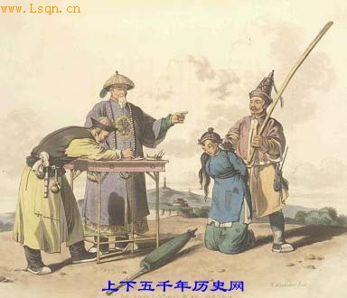 囚犯的表现说明了官府的傲慢和粗暴的态度,不论男女犯人都要屈从于他们。”