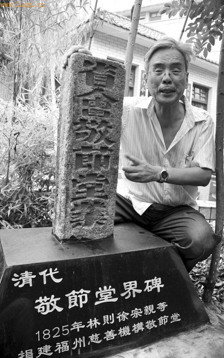 2008年官桂铨曾发现一块敬节堂古碑,福州市林则徐纪念馆及时将这一珍贵文物抢救回馆。昨日新立的是第二块现身的敬节堂古碑,正面印刻“省会敬节堂业”6个大字,花岗岩质,碑长103厘米,宽21厘米,厚12厘米。