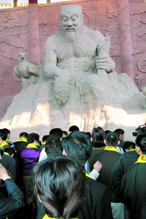 图为陕西宝鸡炎帝陵前广场举行全球华人祭祀炎帝大典。