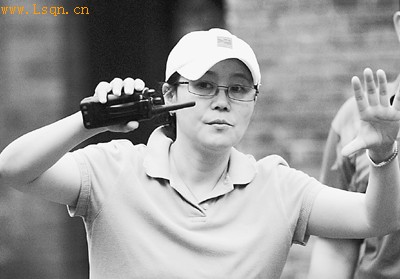 李少红在《红楼梦》片场。