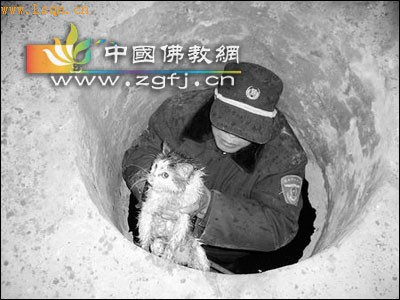 中国佛教新闻网讯 前天晚上,一只小花猫坠入郑州市西环路一无盖深井中,三官庙办事处的巡防队员进行了营救。