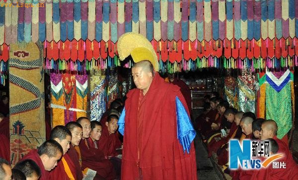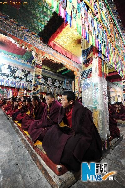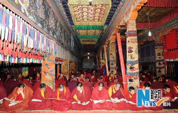 塔尔寺僧人为玉树地区地震亡灵举行超度法会。当日,我国著名黄教圣地塔尔寺举行玉树地区地震亡灵超度法会,数百名僧人在经堂内为玉树地震遇难者念诵经文,超度亡灵。6月2日是青海玉树“4.14”强烈地震发生的第49天。新华社记者 侯德强 摄