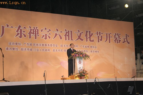 9 月 20 日晚,“ 2009 广东禅宗六祖文化节”在韶关曲江南华寺隆重开幕。国家宗教事务局副局长齐晓飞,广东省人民政府副省长雷于蓝,广东省人民政府原省长卢瑞华,广东省省委统战部副部长、省民族宗教事务委员会主任陈绿平等出席开幕式。来自海内外的有关方面负责人、专家学者、高僧大德和佛教界、社会各界人士约 2000 人参加了开幕式。