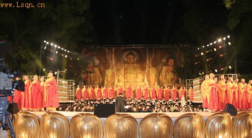 开幕式后,近万名嘉宾及群众观看了汇聚众多演艺界明星的精彩的“坛经梵音大型佛教音乐晚会”。