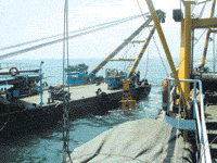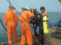 沉船沉没于海床淤泥中,经“气升式”抽排淤泥后的沉船海域深入海床下,海域环境能见度基本为零,水下考古人员只能靠“探摸”感觉来进行水下工作,依例须开展的沉船测量、绘图、照相等获取沉船资料的水下考古基础性工作,几乎无法正常开展。同时,潜水作业人员进行抽排淤泥工程,由于受能见度、水流及涌浪的客观环境影响,不可避免地对沉船文物造成了“二次破坏”,从气升抽淤管口专设的过滤网中,发现了大量陶瓷碎片及其他沉船文化信息。大量迹象表明,传统的水下考古发掘方式,不能适应“南海1号”水下考古工作,船载大批珍贵文物资源、沉船文化信息的完整性保护,面临空前严峻的挑战。
