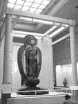 (斜梯前地面上有提示灯)。 特别展厅在3层,面积1500平方米、高7米,分为3个厅,壁柜最长约17米,拟举办各种展览,展厅的墙壁和地板均以木色为基调,设计雅致。开馆纪念特别展展厅,设置与顶部相连的通柜,中间是方柜和桌柜,采用密封效果好的德国展柜。展厅中在多个三脚架上装有仪器,每个仪器上悬挂纸条写着:“温湿度测试中”。 文化交流展厅在4层,面积为3900平方米,主厅内墙面、天花采用原木(日本已研制出阻燃木材),位于中央的基本主展厅天棚高深、空间宽敞。在这里可以了解到日本对外文化交流的历史,展厅四周有14个大小各异的相关展厅,房间以黑色为基调,每个房间展示一个特色主题。目前正在准备的展览以“海之路·亚细亚的路”为主题。展览由该馆策划,丹青社和佐佐木公司承担设计施工,正在筹备中。地面深褐色仿木纹,合成拼装仿木地板块约60×60厘米,正面有一层仿木纹厚约3厘米,反面可见十字交差网状支撑结构。在旁边的小型超清晰数码放映厅里,采用比利时BRCO公司的设备,播放介绍用3D建模复原再现弥生时代的考古遗址等九州历史的数码电影;相关展厅之一:在约30多平方米的空间里同时容纳文物展柜、影视大屏幕和外露展品,如表现古代葬式的内容时,播放使用铜鼓的场面,还有古船模型场景,多种表现手法互补,体现出各部门的协作,观众可以观赏影像、欣赏音乐。博物馆的出口从山中隧道通过。 福冈亚洲美术馆 有1700多件藏品,来自巴基斯坦、蒙古、印尼等23个国家地区,藏品中没有中国画,展出了中国几个画家的现代油画,正在布置柬埔寨一个古王朝的文物展。文物展厅色调为深色, 绘画展厅色调为白色。馆内采用人工照明,绘画展厅光线明亮,仿天光效果并做防紫外线处理,艺术品展示的灯光调试由本馆人员提出想法和要求,请专业照明人员来做。辅助展品方面,福冈亚洲美术馆厅内还展出征集到但未采用的其他3件画展设计方案的模型。展厅中观众互动形式为:提供一张画有椭圆的白纸,准备了各种彩笔,请观众画上脸的五官,画完后保留在展厅。 奈良国立博物馆位于奈良公园的一角,与东大寺、兴福寺、春日大社等相接,在宽敞的馆内,可以尽情地感受到佛教美术的魅力和与之相关的丰富的历史、文化精髓。该馆于明治二十八年(1895年)开馆。由于明治时期曾有废佛毁释,为了防止佛教美术品的散失、破损而建立。明治27年竣工的本馆(收藏重要文物)和昭和四十八年(1973年)竣工的新馆(现称西新馆)在文物所有者的协助下,对奈良、近畿的神社和佛寺的贵重文物开展保护工作,进行测量、调查、研究;同时通过公开展示对日本的艺术、文化的普及启蒙起到了很大的作用。 在此期间,为谋求博物馆的事业发展,东新馆于1998年4月建成。东新馆建筑的展厅采用人工照明,文物展厅一般较暗,顶部有灯轨,环境光多用灵活可调的射灯,展台为提高明度的协调色,柜内照明根据不同需要有日光灯、光纤灯等多种灯具。奈良博物馆的本馆是宫廷建筑家片山东熊的作品,为明治中期(明治二十四年开始建造)欧风建筑的代表;当时为了建筑的坚固耐震,运用了减少壁面窗户、天棚采光等办法,展厅采用自然光与人工照明相结合。由于唐招提寺在维修,许多佛像陈列在奈良博物馆,较大的木佛敞开陈列,四周围有护栏,体现全方位的空间艺术效果。日本的国立博物馆都有中国文物展出,奈良博物馆内有“中国古代青天铜器”陈列。辅助展品方面:在靠墙通柜中的佛像配有后部的照片;在地下回廊为培养儿童对历史文物的兴趣开辟了展示空间,有电脑触摸屏和专为儿童设计的展 品,如:将佛像的各种手势做成木模型并列展出,将佛像的头部做成可开启式的模型,使人能看到佛头的内部,为了适合儿童这部分的展台尺度较低。 京都国立博物馆 馆内现有特别陈列:新收品展,染织:正仓院裂与古代染织,漆工:根来涂与镰仓雕。专题展览的广告提前悬挂出来。 一层展厅有:日本与东洋的雕塑,日本、中国、朝鲜的陶瓷器(展出有很多中国古代陶瓷器),日本与东洋的考古资料(包括——史前考古、历史考古2部分);二层展厅有:绘画——手卷、水墨、佛画、中国绘画,染织,漆工,金工。 森林雕刻馆注重整体环境设计,人们透过展厅的玻璃窗可以将室内艺术品与自然景观融为一体。 MOA美术馆和层层叠叠的斜梯在灯光变化中显得神秘莫测,文物展厅及柜内均有温湿度测试仪,显示数据有所不同。展柜色调有的为深蓝色。 东京国立博物馆 以文物为主的博物馆展柜色调外观多为深棕色,内部多为暖灰白色。 各博物馆的参观导向标志清楚,均有免费的导览简介资料,和电脑信息查询区域,有的与开放的图书资料区或纪念品部在一起。观众可利用网络查询展览及馆内的藏品资料。有的馆可以看到其他馆的展览海报、简介。各馆纪念品部有各种基于本馆文物开发的纪念品、图书、明信片、瓷器、绘画、仿古丝绸制品等。 NHK的高清晰3D数码影像放映技术,使人真实的感受到在自然环境中历史遗产景观。(2006年4月14日6版)