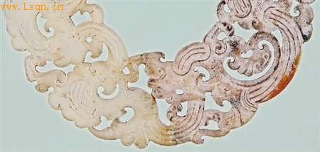 ▲西汉透雕龙凤纹玉环。