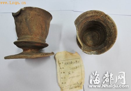 这两个陶杯,很像现在的高脚酒杯 王浩志/图