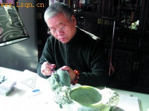 在玉雕行业,有句至理名言,叫“能人眼里无废料”,意思是玉石扔下是石头,加工出来就是宝。眼前这位“能人”,16岁入行把自己弄得伤痕累累,19岁被打成“现行反革命”无家可归,人到中年因为一次拆迁,几乎要白手起家。他像对待顽石一样,把过去的磨难雕刻成今天的成绩。他制作的壁厚1毫米白玉《簋》震撼玉雕界,获得2008年全国“百花奖”特等奖,他所擅长的薄胎是多数玉雕师不敢触碰的题材,他说,“薄胎技艺像赛车一样,挑战心理极限”。