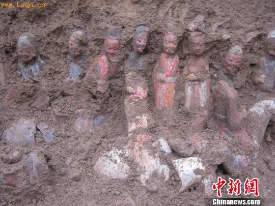 中新网西安6月12日电(记者 冽玮)2012年5月底,西安市文物保护考古研究院在长安区发现一座葬于唐贞观十四年间的夫妇合葬墓,墓主为隋朝鹰扬郎将,该墓出土了具有典型时代特征的陶俑、铜镜、铜钱等器物百余件。