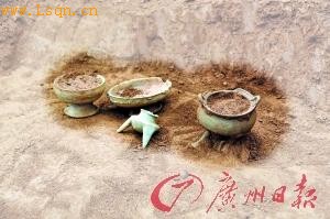 河源和平县文物普查队对古墓葬进行抢救性挖掘 出土多件陶鼎与陶豆