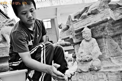 刘彦琪老师蹲在一块残碑边,小心翼翼地将一团白色浆状物均匀拍打在黑石块上,手掌落下,水汽腾起在石块上,这样的拍打要进行多次,直到白色浆状物粘在石块上,这白色浆状物是种“特殊的药品”。他要“医治”的正是眼前这块黑石块——国家一级文物。