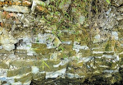 施工现场一段疑为城墙的砖块。