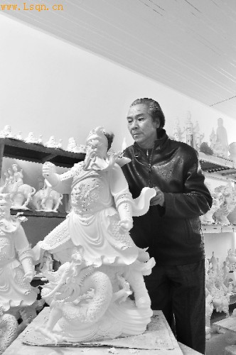 揉泥、堆贴、修整……见到68岁的中国陶瓷艺术大师杨剑民时,他正在工作室内专心致志地创作。 享受国务院[注: 中华人民共和国中华人民共和国国务院,即中央人民政府,是最高国家权力机关的执行机关,是最高国家行政机关,由总理、副总理、国务委员、各部部长、各委员会主任、审计长、秘书长组成。]特殊津贴的杨剑民是推动德化陶瓷业发展的重要人物之一,他发掘和恢复了德化建白瓷刻花工艺,对德化陶瓷业工艺的发展有着特殊的贡献。“作品的第一生命力在于创新。只有刻意创新,独具风格,不落俗套,才能使人一见别有韵致,产生审美上的共鸣。”接受采访时,他如是说。 发掘恢复 建白刻花重放异彩 建白瓷是德化陶瓷的传统,也是中国陶瓷独一无二的烧制手法,其中浮雕、刻花装饰工艺在宋元时期已盛极一时。但是入清以来,随着青花瓷的流行,建白瓷渐渐失传,刻花工艺也几近绝迹。直到上世纪60年代中期,建白瓷才恢复成功,刻花、浮雕等工艺也相继于上世纪70年代得到发掘和恢复。 那么杨老是怎么做到的呢?其实,对于陶瓷艺术,杨老一直是个有心人。1945年出生在泉州鲤城东海的杨老秉性聪颖,灵巧好学。初中毕业后,他考入厦门工艺美术学院大专班。1965年,他从厦门工艺美术学院大专班陶瓷美术专业毕业后,杨老被分配到了德化瓷厂模型组工作,此后,便一生扎根在德化了。 上世纪70年代中期,已经在德化瓷厂模型组工作了十年的杨老意外地发现,德化有出土的陶瓷刻花残片。凭着工作经验和专业知识,杨老凭直觉认定,德化历史上曾经有过刻花工艺,自己必须设法恢复这项传统而珍贵的工艺。 杨老开始利用业余时间进行大胆尝试,大概用了一年多时间,他掌握了建白瓷的刻花工艺。而让刻花工艺重见天日的机会也很快来了,那是1979年,全国人民大会堂福建厅用瓷的生产任务下达给了德化瓷厂。德化瓷厂选中了杨老设计的样稿,并指定由他负责生产。杨老便趁机大胆地将建白瓷刻花工艺运用到了这批瓷作上。 这项工艺甫一亮相,便轰动京城,引起一片惊叹。1983年,杨老又用建白刻花成功试制成套的西餐具,从而成了将建白瓷用于日用瓷生产的第一人。1984年,建白45头刻花玉卉西餐具获福建省新产品开发先进奖,在全国评比中一举夺魁,获得轻工部优质产品称号、轻工部出口产品展览金奖。此后,杨老又不断采用建白刻花设计制作大量陶瓷新产品与艺术作品,获得国[注: 得国 拼音: 解释: 1.谓获得国家政权。 2.指执政。-deguo]家和省级大奖无数。建白瓷逐渐受到高度重视,并被列为全国特种瓷,业已失传的刻花工艺也随着建白瓷的崛起再次重放异彩。 由于对德化陶瓷发展的贡献突出,1989年,杨老被国务院授予“全国劳动模范”称号,并于1992年10月开始享受国家特殊津贴待遇。 一生热爱 执着追求陶瓷艺术 在采访过程中,杨老一直谦逊地表示,他的成功得益于机遇。但其实能成就杨老不平凡的事业的,更多的还是那份鲜为人知的对陶瓷艺术的坚持与执着。 回忆起在德化瓷厂模型组工作的十年,杨老说:“虽然制模、翻主模、挑石膏、煮硫黄 [1] [2] 下一页