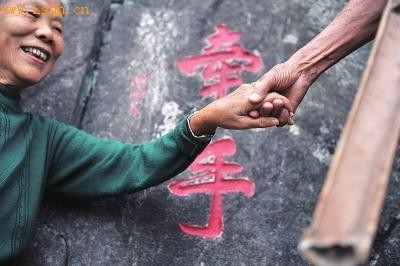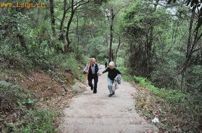 从陈孝尧家到高盖山公园还有约一公里的路程,一路上两位老人牵着手边歇边走,相互递水、擦汗。上山后就开始分工,陈孝尧负责砌砖、种树,还从山上的厕所挑“肥料”,老伴陈碧珍则提水、打扫卫生等,每次上山都[注: 山都 拼音: 解释: 1.兽名。又称豚尾狒狒,是狒狒类中最大的一种。-shandou]得呆上3个小时以上,在最初的一年时间里,陈孝尧的体重从64公斤减到55公斤。