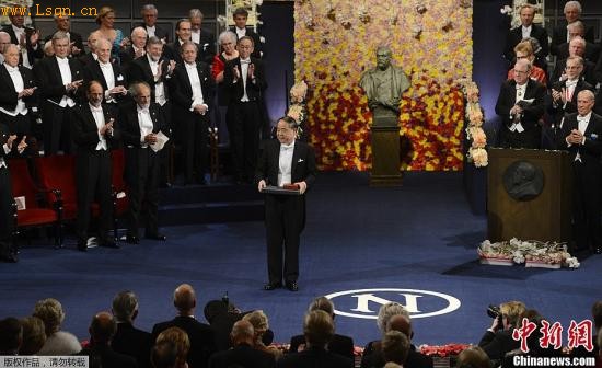 当地时间12月10日,2012年诺贝尔颁奖仪式在瑞典斯德哥尔摩音乐厅举行。