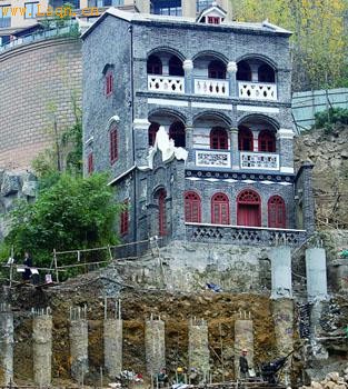 12月12日,记者来到位于南滨路武夷滨江小区旁边,只见围墙圈起一大片工地,工地里的地面已经全被挖开,一派繁忙景象。就在这片工地中,一栋三层小洋楼矗立在工地一角,青砖灰瓦,雕花木窗,充满了中西合璧的韵味。WWw.lSQN.cn工地里的工人告诉记者,那就是孙家大院,工人们称其“四号楼”。