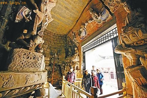 12月23日,大足[注: 大足县-大足县总面积1390平方千米。总人口92万人(2004年)。县人民政府驻棠香街道报恩村,邮编:402360。代码:500225。]区宝顶山大佛湾,游客在最新开放的毗卢道场洞窟参观。