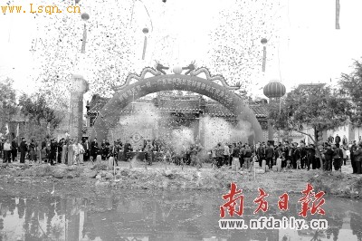 1月16日,始兴县隘子镇石头塘村彩旗飘扬,锣鼓喧天,来自泰国以及北京、河北、河南、四川、广西、湖南、福建、海南等国内12个省、市、自治区的3000名张九龄[注: 张九龄 (678-740),字子寿,一名博物,韶州曲江(今属广东)人。唐朝大臣,官至宰相。武则天时中进士,后任右拾遗。玄宗时吏部选拔人才,曾由他和赵冬曦评定等第。]后裔、张氏宗亲代表相聚石头塘村,参加张氏家族历史盛会――张九龄故居重修竣工庆典大会。