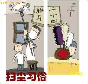 除旧迎新,首先要干干净净,把“穷运”、“晦气”扫出门 腊月二十四这天,各家不光要打扫屋子、洗衣服,还要洗澡、洗头 至于为什么要扫尘,民间有个传说:这是灶火爷为搭救凡人想出的办法 统筹:河南商报记者李肖肖执行:河南商报记者李肖肖宗雷见习记者陈晓丽 “腊月二十四,掸尘扫房子。” 33岁的郑州市民刘女士还记得,小时候在农村,这一天全家齐上阵扫房子,屋里屋外一尘不染,奶奶做活儿最细致,灯泡、画轴都要擦干净,往往要忙到晚上。而洗澡、洗头也是必不可少的环节,“不偎着火,头发洗完都能结成冰凌子”。 扫尘记忆 天再冷也要洗个头 郑州大学教授、人文学者、民俗专家高天星说,在尧舜时代就开始有春节扫尘的风俗。 按民间的说法:新春扫尘有“除尘布新”的涵义,其用意是要把一切“穷运”、“晦气”统统扫出门。这一习俗寄托着人们破旧立新的愿望,和辞旧迎新的祈求。 刘女士说,那一天,男人负责力气活,彻底清扫屋内上下,还要把平常不用的碟子、盆、酒盅、酒壶洗干净以备过年用。 拆洗被子、衣服,这活就是女人的了。旧时一般人家结婚时的棉衣棉裤要穿很久,有的甚至要穿到老,只是外面的罩褂罩裤三五年重置一下。wwW.LSqn.CN到年关都要脱下来洗,又没有替换的,碰到雨雪天就热闹了。 此外,人们还要洗澡,称为“洗福禄”,洗去一年的晦气,迎接来年的新春。 因为天太冷,老家冬天洗澡就成了一件大事。但过年将近,想着要穿新衣服,这澡是一定要洗的。先烧一大锅水,房间里放上一盆炭火,家里人还得轮流洗澡,有时候实在太冷,至少也要洗个头发,“不偎着火,头发洗完都能结成冰凌子。” 扫尘来历 初见于尧舜,盛于唐 高天星说,古代人相信万物有灵论,以为家中的刀、井、灶各种物件都有神明主司。人们也是基于这种信念,认为必须选一个百无禁忌的日子清扫屋子。 据《陕西日报》报道,“帚”字已见于甲骨文[注: 甲骨文是中国的一种古代文字,认为是现代汉字的初型,也被认为是汉字的书体之一,是现存中国古代最成熟的一种文字,因其最早发现在动物骨头上而得名。]。陕西出土的商周青铜器[注: 青铜器是指以青铜为基本原料加工而制成的器皿、用器等。青铜,古称金或吉金,是红铜与其它化学元素(锡、镍、铅、磷等)的合金,其铜锈呈青绿色,因而得名。]上,就有“子持帚作洒扫形”的铭文。可见,人们在几千年以前就用扫帚扫除了。《礼记》中,有“凡内外,鸡初鸣……洒扫室堂及庭”的记事。这说明,人们在很早以前就知道污秽、尘沫与传播疾病有关。 据传说,早在尧舜时代,我国人民就有了“扫年”的习俗,它起源于驱除病疫的宗教仪式,后来,逐渐演变为年终的卫生大扫除了。到唐代,“扫年”之风盛行。据宋人吴自牧《梦粱录》记载:“十二月尽……不论大小家,俱洒扫门闾,去尘秽,净庭户……以祈新岁之安。” 扫尘工具 鸡毛掸子是“主力”? 一把带叶的竹子扫帚,绑上一根长长的竹竿,便成了扫尘利器。 [1] [2] 下一页