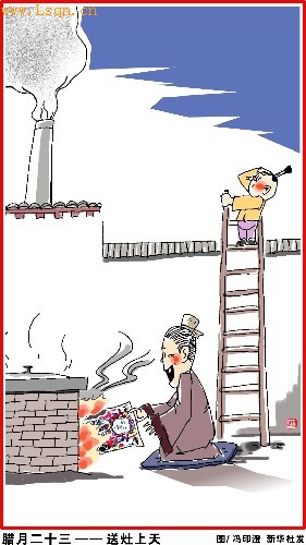据说,每年的腊月二十三,灶王爷都要上天向玉皇大帝禀报这家人的善恶,让玉皇大帝赏罚。因此送灶时,人们在灶王像前的桌案上供放糖果、清水、料豆、秣草,其中,后三样是为灶王升天的坐骑备料。wwW.lSqn.CN祭灶时,还要把糖(或蜜)融化,涂抹在灶王爷的嘴上,这样他就不能在玉帝那里讲坏话了,曰为:上天言好事。民间传说,灶王爷上天专门告人间善恶,一旦那家被告有恶行,大罪要减寿三百天,小罪要减寿一百天。此说法流传的比较广泛。
